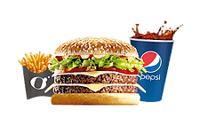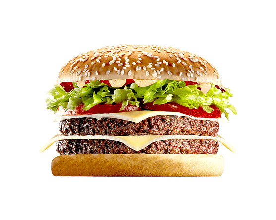 2 steaks 100g, salade, tomates, oignons, 2 tranches de cheddar, sauce Malo.