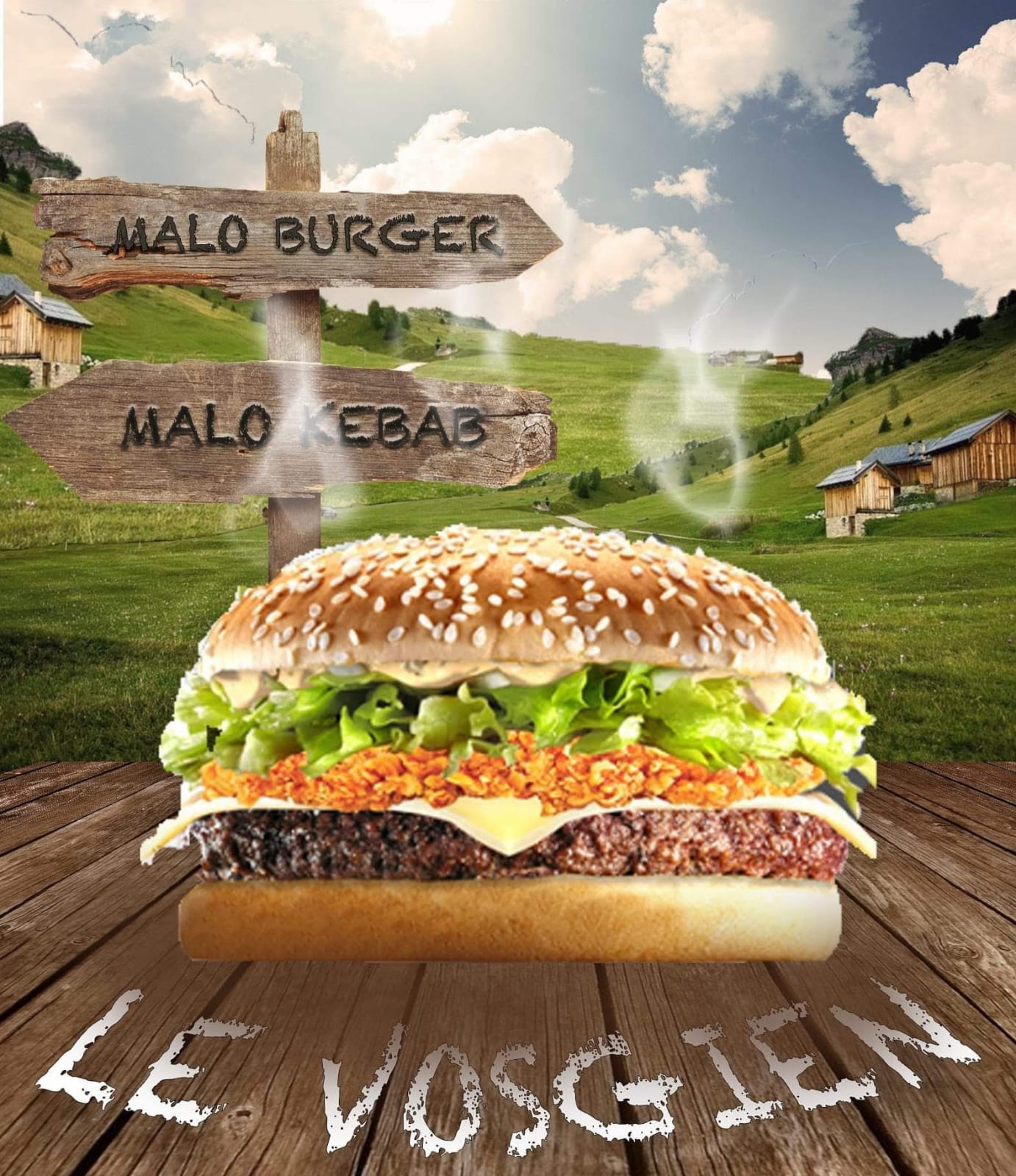 | Ingredients | Steak de 100 g Cheddar Salade Galette de pomme de terre Sauce blance Poivre Cuisson: A point Bien cuit Bleu Saignan Sauce au choix: Blanche Ketchup Mayo Moutarde Barbecue Harisa Vinaigrette Andalouse Algerienne Samourai Poivre Piment Biggy burger 1 Tranche de Fromage: Cherdar Feta Mozzarella |